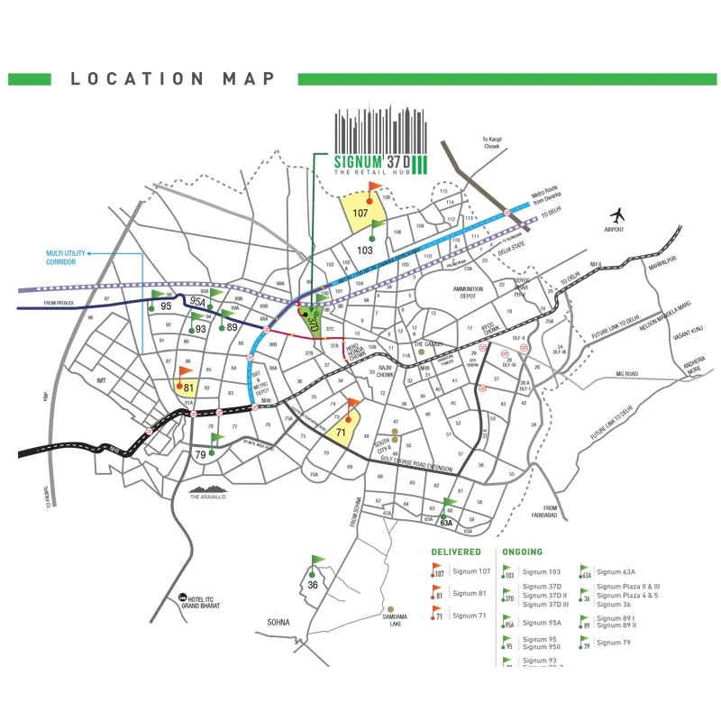 Undeniably, the commercial project Signature Global Signum 37 D 3 is located just 4 Km away from the Hero Honda Chowk & 6 Km from the Gurgaon Sadar. You can easily reach to any part of the Gurgaon from here. There are various transportation modes available from this location. Buying shop at Signature Global Signum 37D 3 Sector 37d Gurgaon would mean present amidst the neighborhood of leading residential projects including Apex our homes, Taksila Height, Imperia Esfera, to mention a few.
